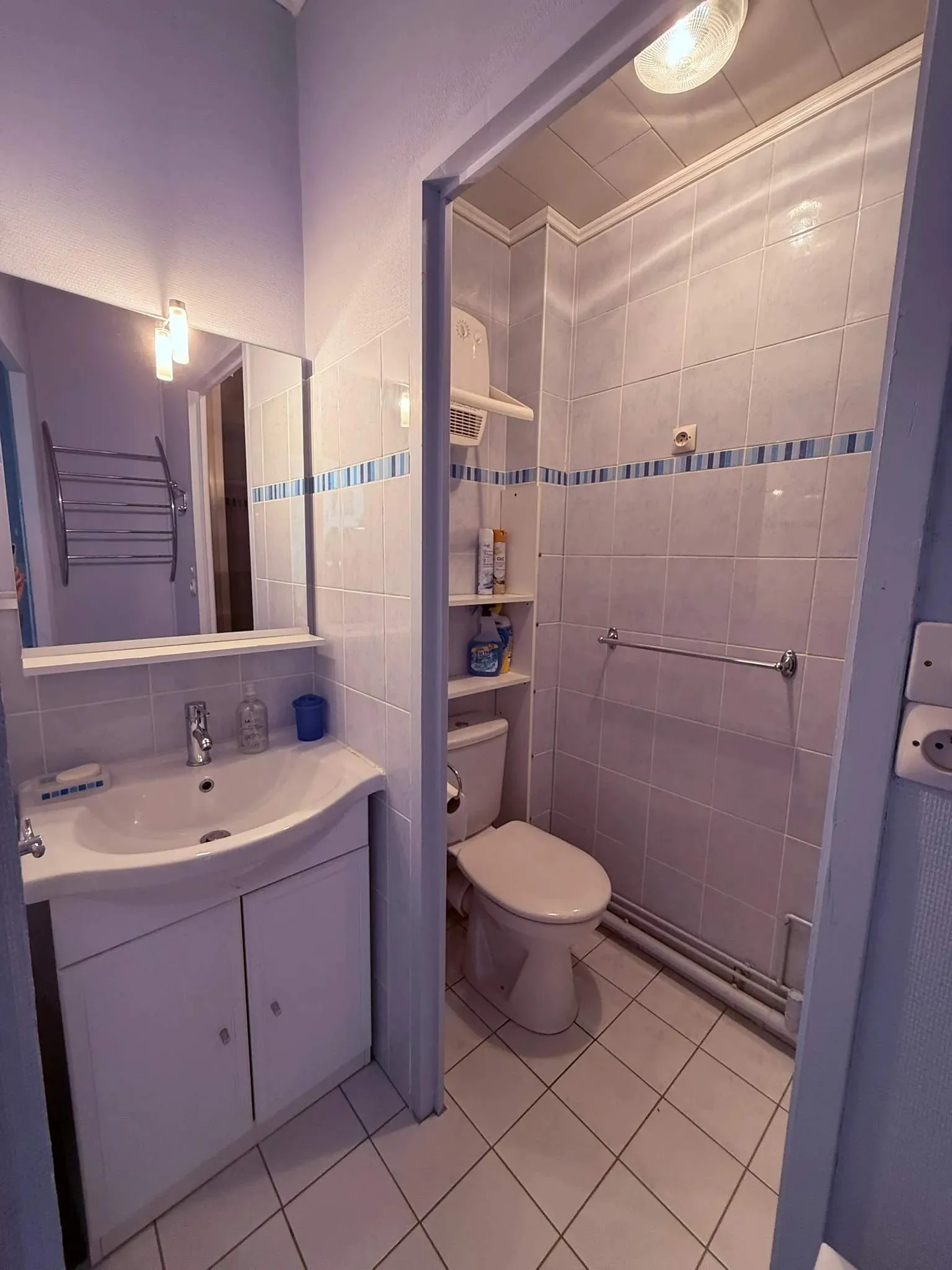 Sanitaires : Salle de bain (ou d’eau) avec douche, lavabo et WC séparés.